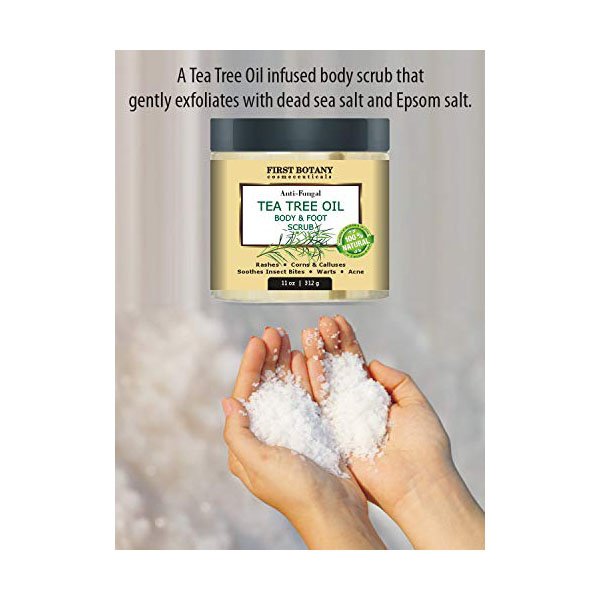 NATURAL EXFOLIATOR SKINCARE: Tea tree oil body scrubber has so many anti-viral and anti-fungal benefits. We present our new foot and body scrub.. What a natural benefit for Athletes Foot treatment, Psoriasis, Ringworm, Anti Jock Itch treatment, Callus Remover, Nail Fungus & Body Odor!