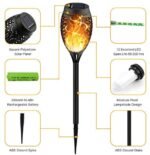 Gorgeous Flickering Flames: Solar Torches flicker a gorgeous dancing flames, a safe alternative to the real “flames”. Through Upgraded 12LEDs, it casts a safe, soft and mood-enhancing glow. These are small torches with the total length 20.6 inches and diameter 3 inches.