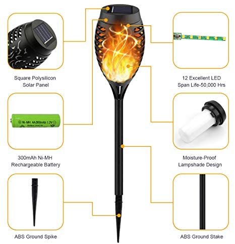 Broad Decoration Scenarios: Torch Light is a prefect choice for Home, Garden, Yard, Pathway, Walkway’s Landscape Decorations and garden party, camping, barbecue, wedding, Christmas, Halloween festival, which could provide a perfect campfire ambience.