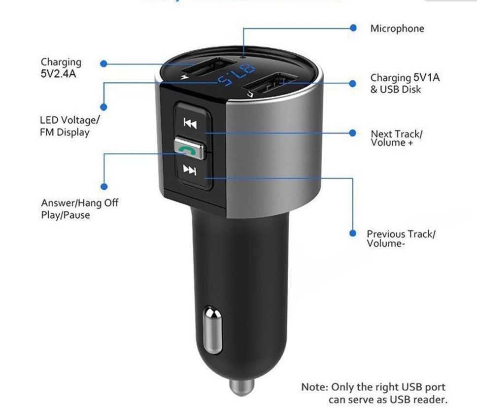 1) This product is equipped with a Bluetooth version, which can make calls with Bluetooth hands-free, and dual USB ports for charging, which can simultaneously charge multiple electronic devices on the car.