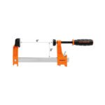 High-carbon steel bar and glass-filled nylon handle make it strong enough. With soft and durable plastic pads, steel bar is plated to be rust resistant and the iron castings have an orange baked enamel finish
