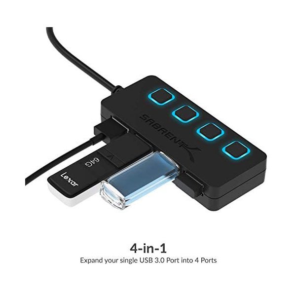 Sabrent 4-Port USB 3.0 Hub with Individual LED Power Switches