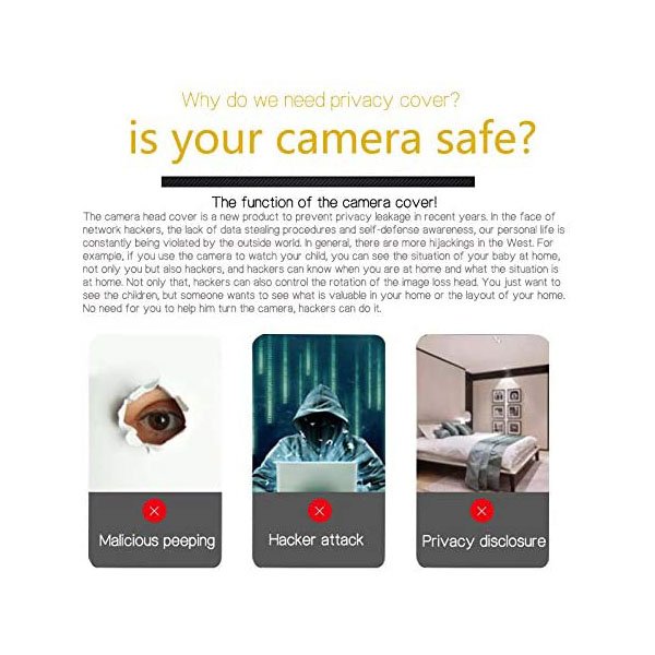 Strong and durable nano double-sided adhesive bonding can make reliable connection between your devices and webcam cover. The adhesive can be easily applied and removed from the device Without any traces Covers your webcam when not in use and prevents webcam hackers from spying on you. Slides open when you need to use your webcam. Locks in place to ensure cover does not slide open.